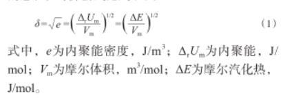 式中,e为内聚能密度,J/m3;ΔrUm为内聚能,J/mol;Vm为摩尔体积,m3/mol;ΔE为摩尔汽化热,J/mol。
