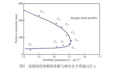 图2直链烷烃溶解度参数与相对分子质量的关系