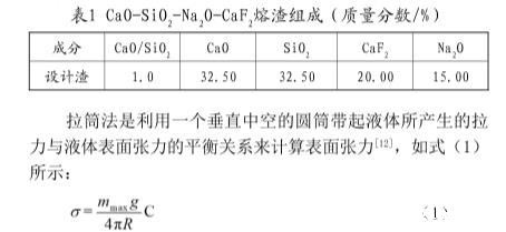 拉筒法和静滴法测定连铸结晶器保护渣表面张力(一)