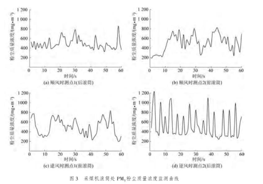 图3采煤机滚筒处PM5粉尘质量浓度监测曲线