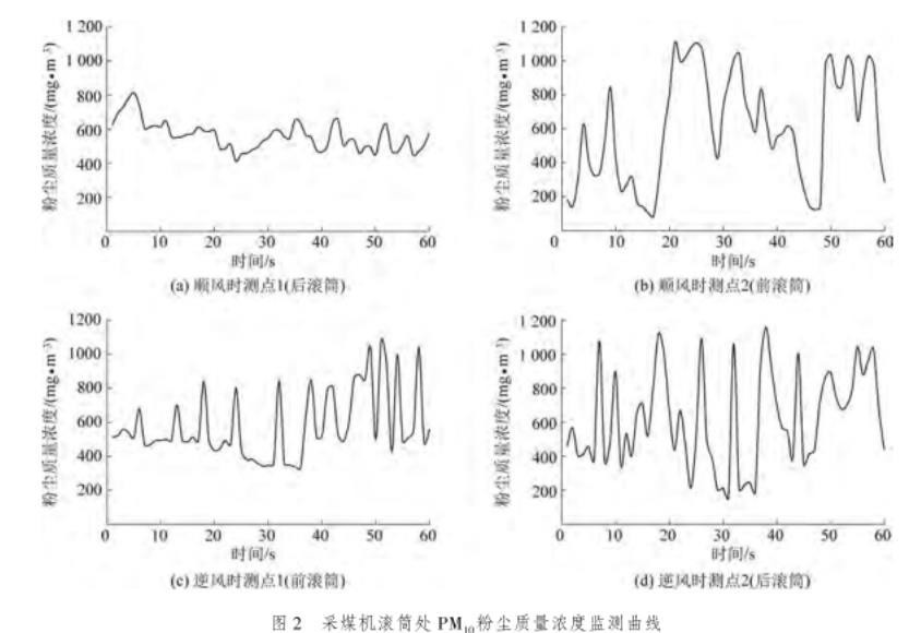图2采煤机滚筒处PM10粉尘质量浓度监测曲线