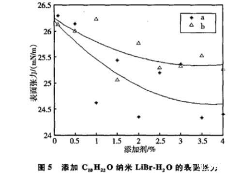 图5添加C10 H 22 O纳米LiBr-H 2 O的表面张力