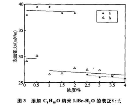 图3添加C8 H 18 O纳米LiBr-H 2 O的表面张力