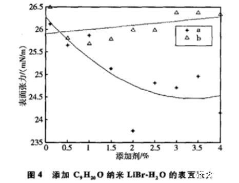图4添加C9H 20O纳米LiBr-H 2O的表面张力