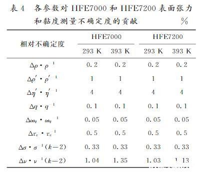 表4各参数对HFE7000和HFE7200表面张力和黏度测量不确定度的贡献%
