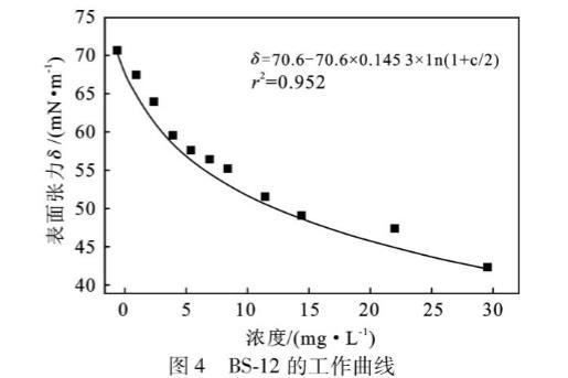十二烷基二甲基甜菜碱(BS-12)是一种两性表面活性剂,性能温和,在产品配方中起性能调节和降低刺激性的作用,可用作纤维柔软剂、金属表面加工助剂、抗静电剂等产品中。BS-12试样的表面张力测定结果见表4。