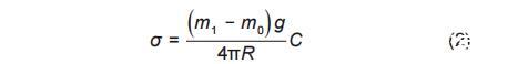 式中,R为拉筒底环平均半径,m;m_1为拉筒脱离熔盐液面时电子天平的最大读数,g;m_0为拉筒质量,g;g为重力加速度,取9.81 m/s²;C为仪器系数。