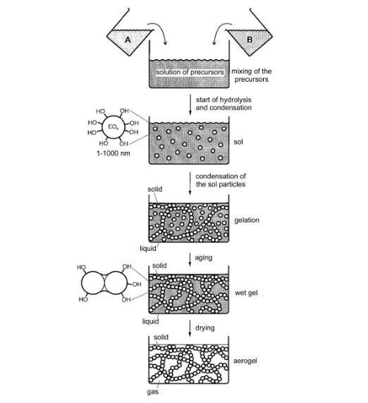 图3氧化硅气凝胶溶胶~凝胶法的制备过程