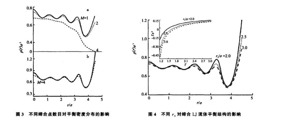 分子的缔合点数目 M 直接决定缔合所形成的团簇的结构。具有 1 个或 2 个缔合点的分子所形成 的缔合结构相对比较简单,前者只能产生一些分子对,而后者则只能形成一定长度 的分子链;当 M>2 时,分子间发生缔合的机会增加,导致诸如环状、树状等结构比较复杂团簇结构的形成。因此,分子的缔合点数目也是影响体系平衡结构和性质的重要因素。