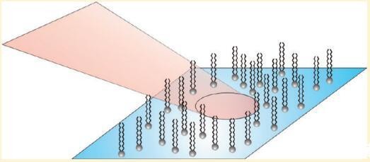 表面活性剂DPPC(1,2-二棕榈酰-sn-甘油-3-磷酸胆碱)、1-十二醇(C12H25OH)和棕榈酸(C15H31COOH)分别从Avanti极性脂质、Fluka和Sigma-Aldrich中获得,使用时无需进一步纯化。单分子膜从氯仿溶液(DPPC)中扩散∼0.5毫米,1-十二醇∼3毫米,棕榈酸∼2毫米)在空气中−H2O(微孔,18MΩcm)界面。通过两种方法制备具有不同表面密度的单分子膜:通过在水面上散布0.5μL液滴的数量或通过压缩该层来控制每个分子的面积。使用商用(芬兰Kibron Inc.)张力计,使用指针测量表面压力。由于椭偏测量结果取决于单层制备的方式,我们为每种类型的实验提供了制备的明确描述。