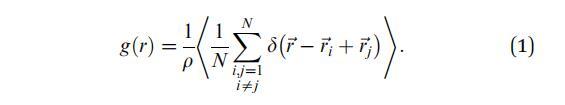 表征单层结构的一个关键量是径向分布函数g(r)。考虑到单层平面中域的均匀分布,g(r)表示在选择为参考点的另一个域的距离r处找到域的概率:
