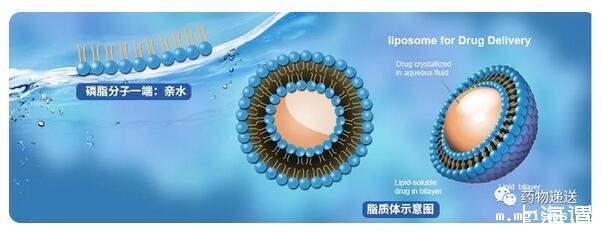 图2丙泊酚脂肪乳3、脂质体注射剂脂质体(liposomes)是由磷脂和其他两亲性物质分散于水中形成的球形封闭囊泡。脂质体是通过混合特定比例的两亲性物质(如磷脂和胆固醇)形成的,当它们在水溶液中水合时,会排列成一层或多层同心的脂质双分子膜包封而成的超微型球状载体,可用于药物包载。脂质体的概念在1965年由英国Bangham等提出,1974年Rahman等首先将脂质体作为药物的载体应用。第一款脂质体注射剂是由美国NeXstar公司(已被Gilead公司并购)开发的两性霉素B脂质体Ambisome,能有效降低两性霉索B引起的急性肾毒性。Ambisome于1990年在欧洲获批上市,1997年在美国上市,用于念珠菌、曲霉菌、隐球菌等造成的深部真菌感染以及内脏利什曼病。第一款抗肿瘤药物脂质体是由美国Sequus制药公司开发的阿霉素脂质体Doxil,于1995年获FDA批准上市用于治疗进展期及铂类化疗药化疗后复发的卵巢癌患者。Doxil的组成成分中含有两亲性磷脂-聚合物共轭物聚乙二醇-硬脂酰磷脂酰乙醇胺(DSPE-PEG2000),亲水端的存在使脂质体免于被单核吞噬系统(Mononuclear Phagocytic System,MPS)快速清除而延长血液循环时间,长循环特性有利于增加脂质体在病变部位的相对蓄积量。随着新型载体材料和表面修饰技术的开发和应用,对脂质体的处方和工艺进行改进,相继开发了环境响应型、主动靶向型、长效缓释型脂质体,例如热敏脂质体、pH敏感脂质体、磁性脂质体、导向肽偶联脂质体、多肽阳离子脂质体、免疫脂质体、多囊脂质体等。目前已有多种类型的脂质体获批上市或进入临床研究阶段,相信随着技术的积累,更多优异的脂质体将会被相继开发。
